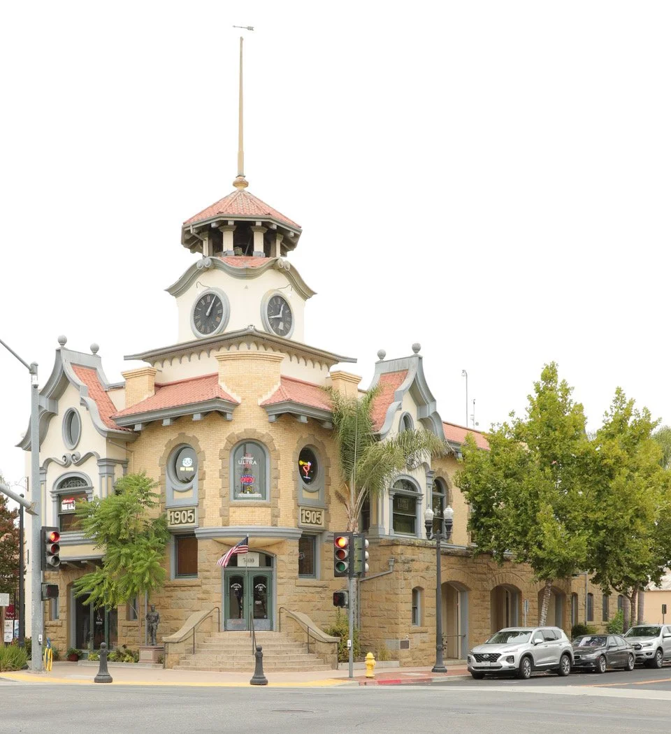 Gilroy’s first volunteer fire company in 1869 was the Vigilant Engine Company, composed of 35 men. Later the Eureka Hook and Ladder company formed, followed by the Neptune Hose Company which merged with Eureka. A heated rivalry ensued for a while, but after this station was built the two companies combined. The men slept upstairs and slid down the brass pole to make a quick getaway to the fire scene. In 1922 the City ordered a new Seagrave fire engine. There are photos of this engine and others along with history of the Gilroy fire department at the Gilroy Museum. This station served the City until 1978 when a modern fire station was built and this building was converted to a restaurant. In 1981 wooden balconies and a boardwalk were added on the eastside. Covered patio seating now obscures the beauty of the original design, but inside you will find the brass pole, tin ceiling and other historic features.