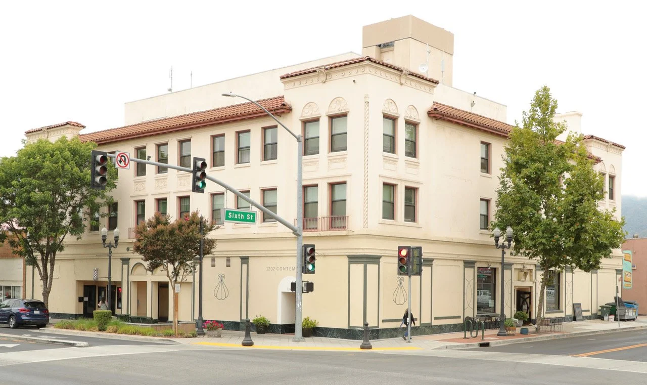 This Spanish Colonial Revival building, located at the intersection of Sixth and Monterey Streets just south of Gilroy’s busy downtown shopping and entertainment district, is easily the most massive structure in the area. The Milias Hotel was originally designed by William Weeks and built by James Patterson in 1922 for $200,000. It was built to be a hotel, with a basement, three floors, 60 rooms, and a garden roof that was used for dining and dancing. Off the roomy entryway was a grand double dining room, and on the fourth floor, a bright, airy space referred to as “The Sun Room” was also used for dining and dancing. The Milias Hotel was the first three-story building in Gilroy, and the elevator installed in this hotel—the first in the city—was quite the novelty in the community at the time, especially to local kids.