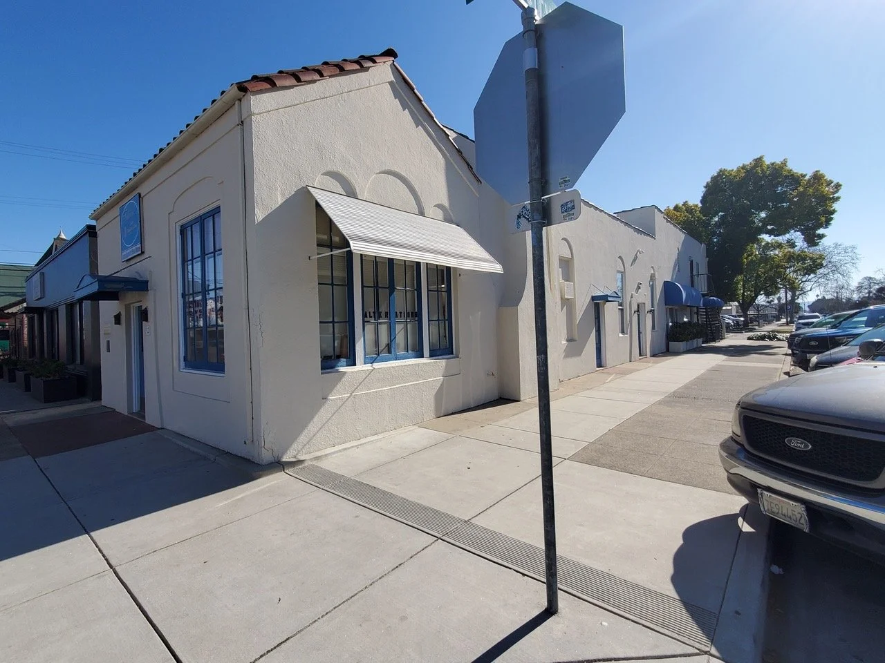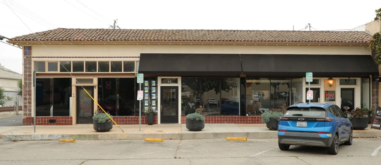 The historical and architectural significance of this building, commonly called The Thornton Building, includes a curved façade that is unique and important in the Monterey streetscape. Now a divided structure with two storefronts, it was originally one.